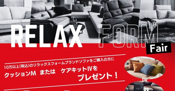 人気ソファブランドのリラックスフォームをお得にお買い求めいただけるキャンペーン!