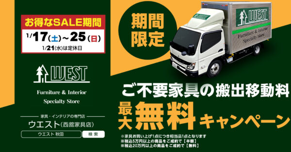 家具お買上1点につき、相当品1点分の搬出移動料が最大無料となるキャンペーンです。