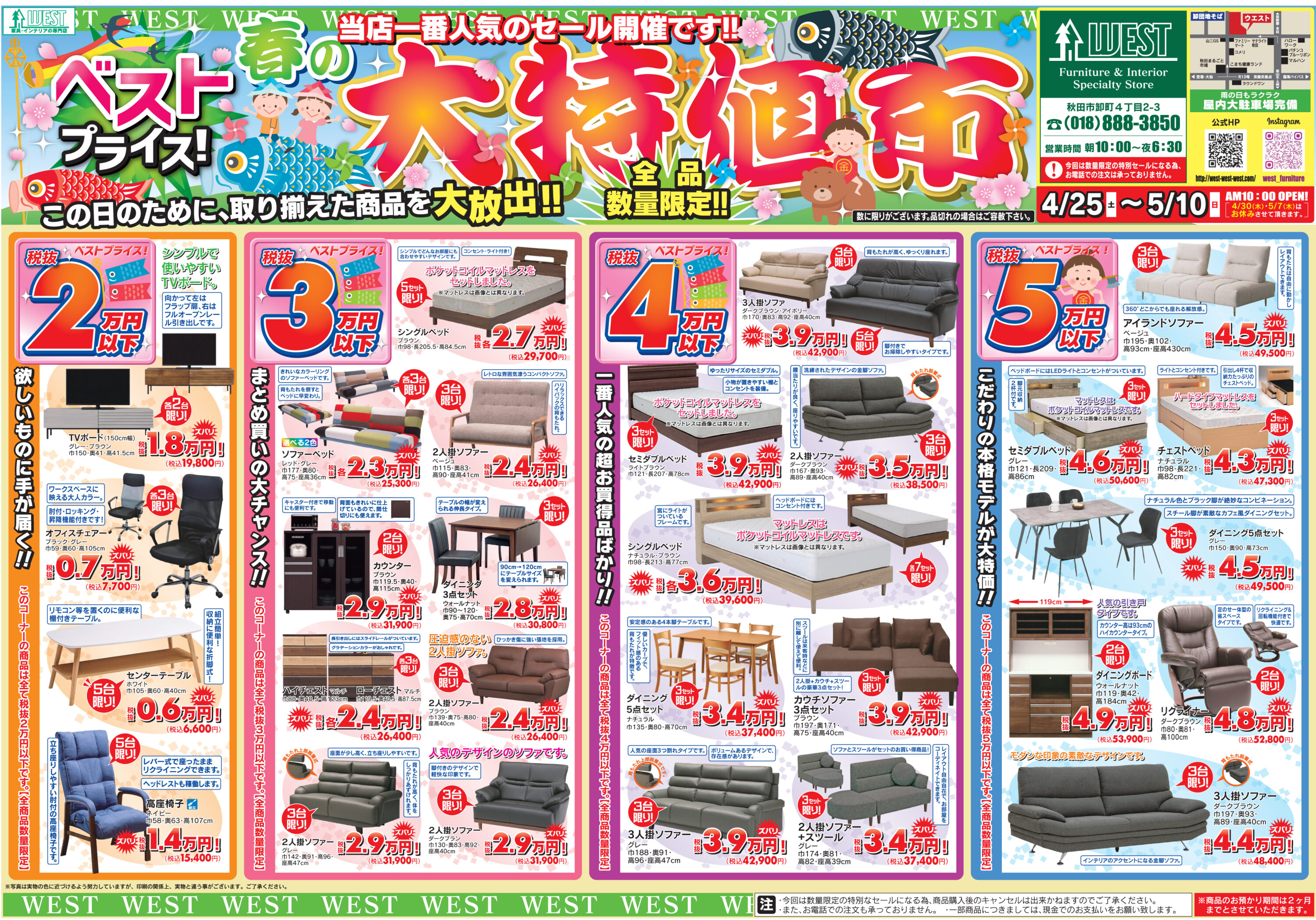 【数量限定!】【期間限定!】春の大特値市!! | WEST